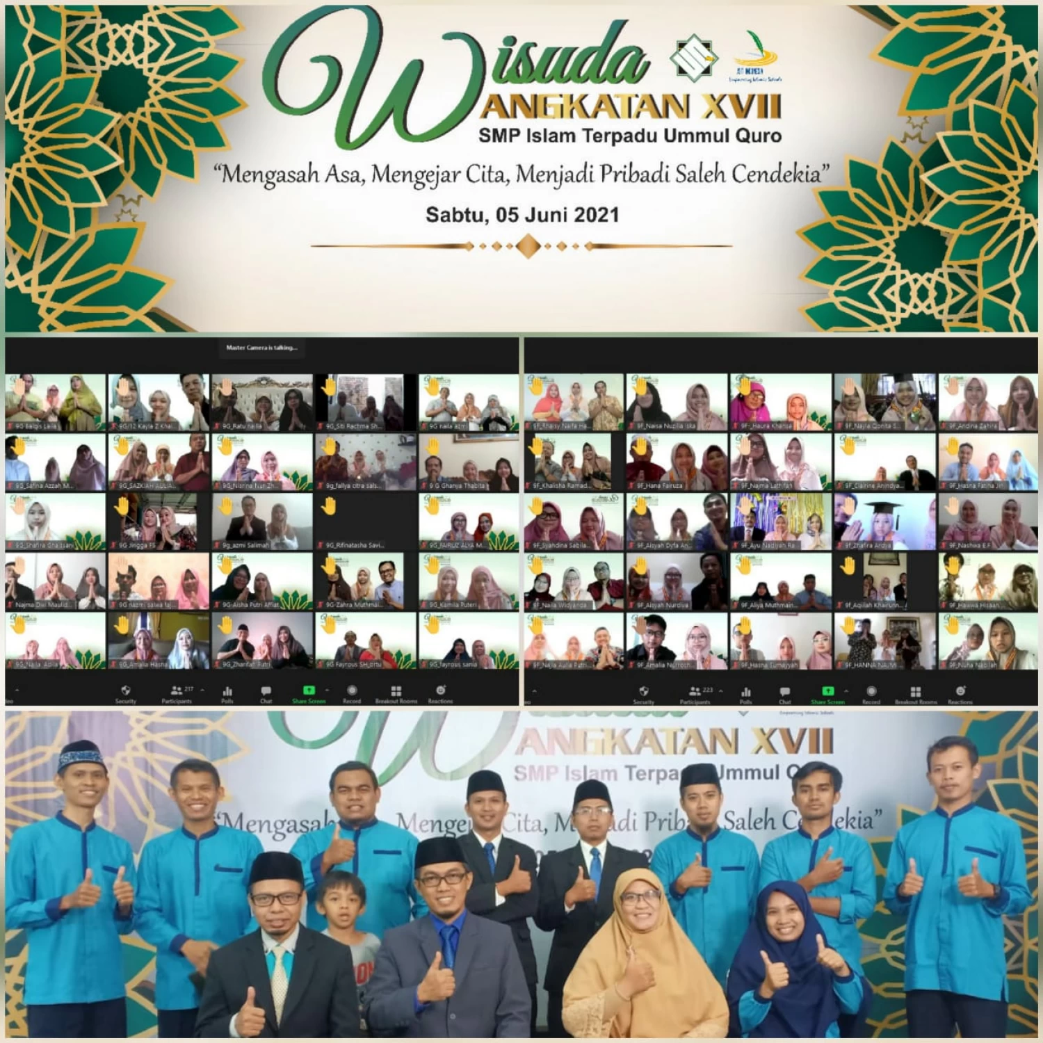 SMPIT Ummul Quro angkatan-17 mengenang masa-masa sekolahnya pada Sabtu, 5 Juni 2021 secara virtual. Pengalaman wisuda tahun ini tidak jauh berbeda dengan wisuda tahun lalu saat awal adanya pandemi Covid-19.